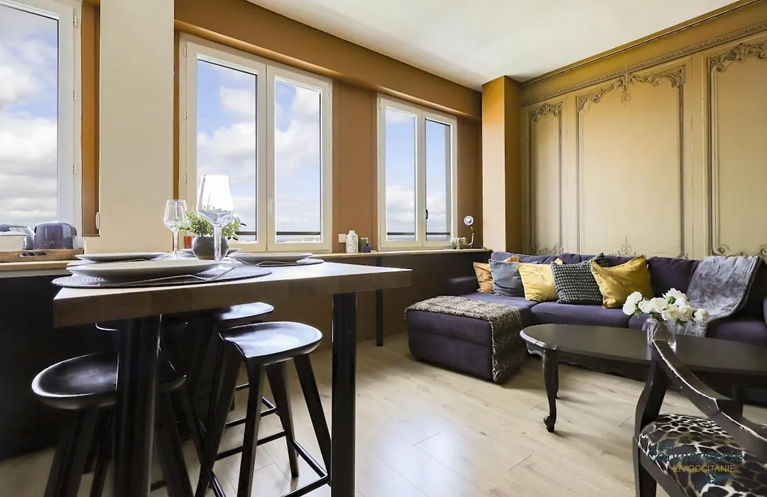 El apartamento Jaures - Vue Panoramique Sur La Ville Rose Toulouse se encuentra a 1 km del Capitolio de Toulouse y a 400 metros de la estación de metro Jeanne d'Arc. Los huéspedes pueden optar por utilizar el Wi-Fi, tanto para asuntos de negocios como para entretenimiento.